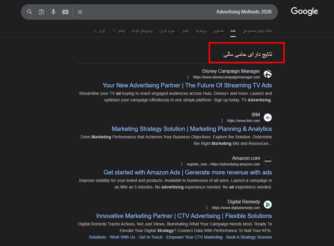 - گوگل ادز (نتایج تبلیغاتی شبیه نتایج ارگانیک)