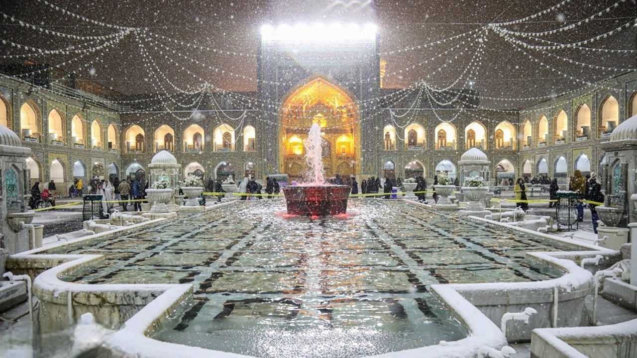 تصاویری زیبا از برف‌روبی پشت بام حرم مطهر رضوی + فیلم