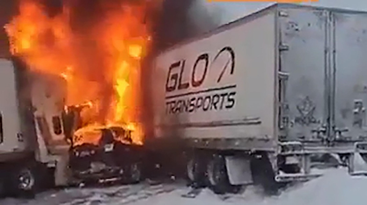بیش از پنجاه وسیله نقلیه امروز به دلیل لغزندگی جاده در بزرگراه 401 نزدیک انتاریو، کانادا با یکدیگر برخورد کردند که باعث آتش‌سوزی چند خودرو و کامیون شد.