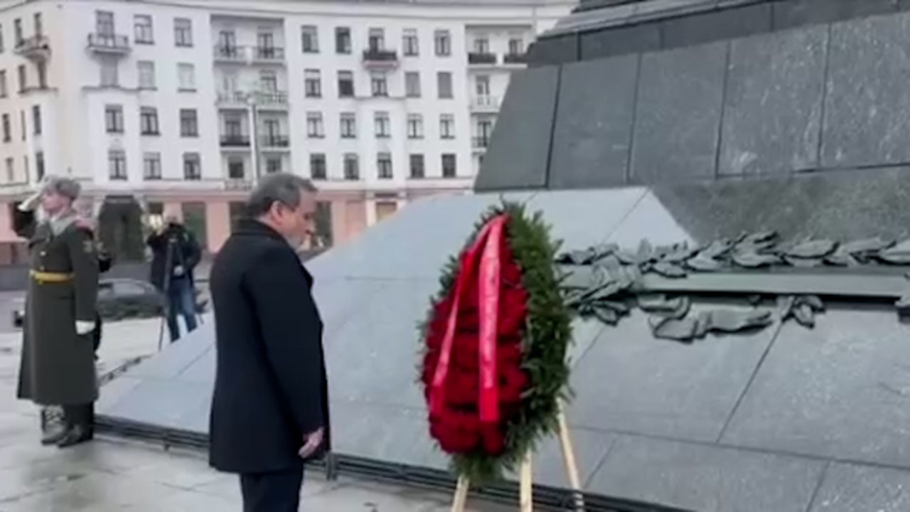 مگ دید – وزیر امور خارجه با حضور در محل یادمان پیروزی در مینسک با اهدای تاج گل به کشته شدگان جنگ جهانی دوم ادای احترام کرد.