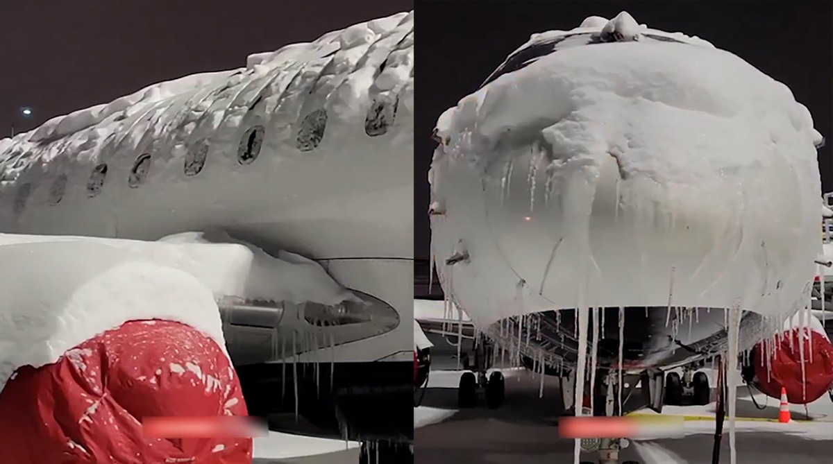 ویدیویی از یخ زدن یک هواپیما در فرودگاه تورنتو کانادا را ببینید.