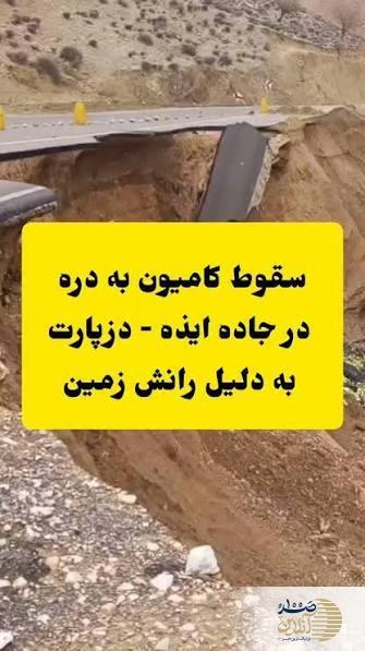 ببینید/رانش زمین در ایذه؛ سقوط مرگبار کامیون به دره
