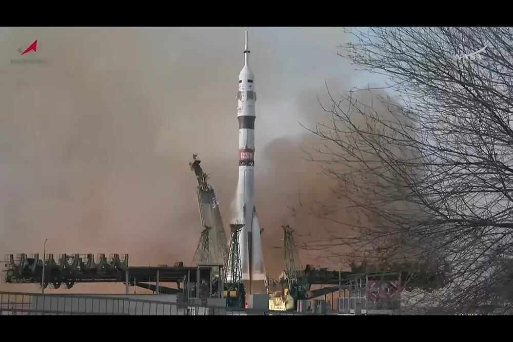 این سه فضانورد در ساعت ۴:۲۷ صبح به وقت منطقه زمانی شرقی از پایگاه فضایی بایکونور در قزاقستان راهی مقصد شدند و قرار است حدود سه ساعت بعد به ماژول خدماتی «زوزدا»(Zvezda) متصل شوند.