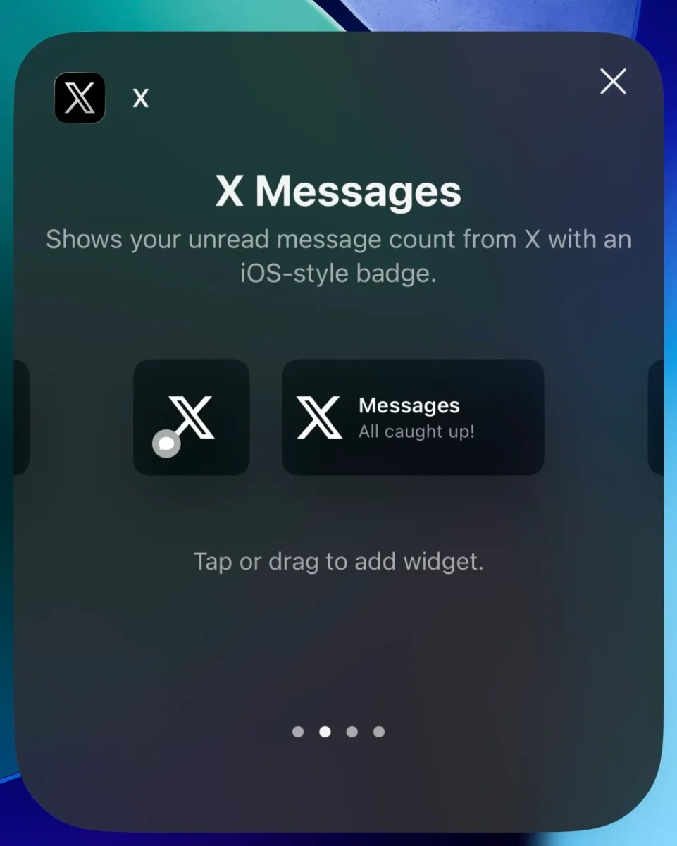 در صفحه قفل، تنوع ویجتها بیشتر است. ویجت X Notifications تعداد اعلانهای جدید را نشان میدهد و ویجت X Messages تعداد پیامهای خواندهنشده در X Chat را نمایش میکند. همچنین دو ویجت مرتبط با Grok برای دسترسی سریع به گفتوگوی متنی و صوتی در نظر گرفته شده است، که هرکدام در نسخه کوچک و بزرگ قابل استفاده هستند.